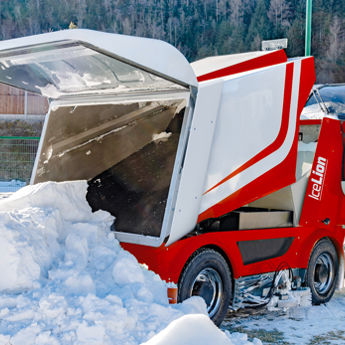 - Serbatoio neve in acciaio verniciato a polvere con capacità di 5.0 m³ (compresso 5,8 m³)